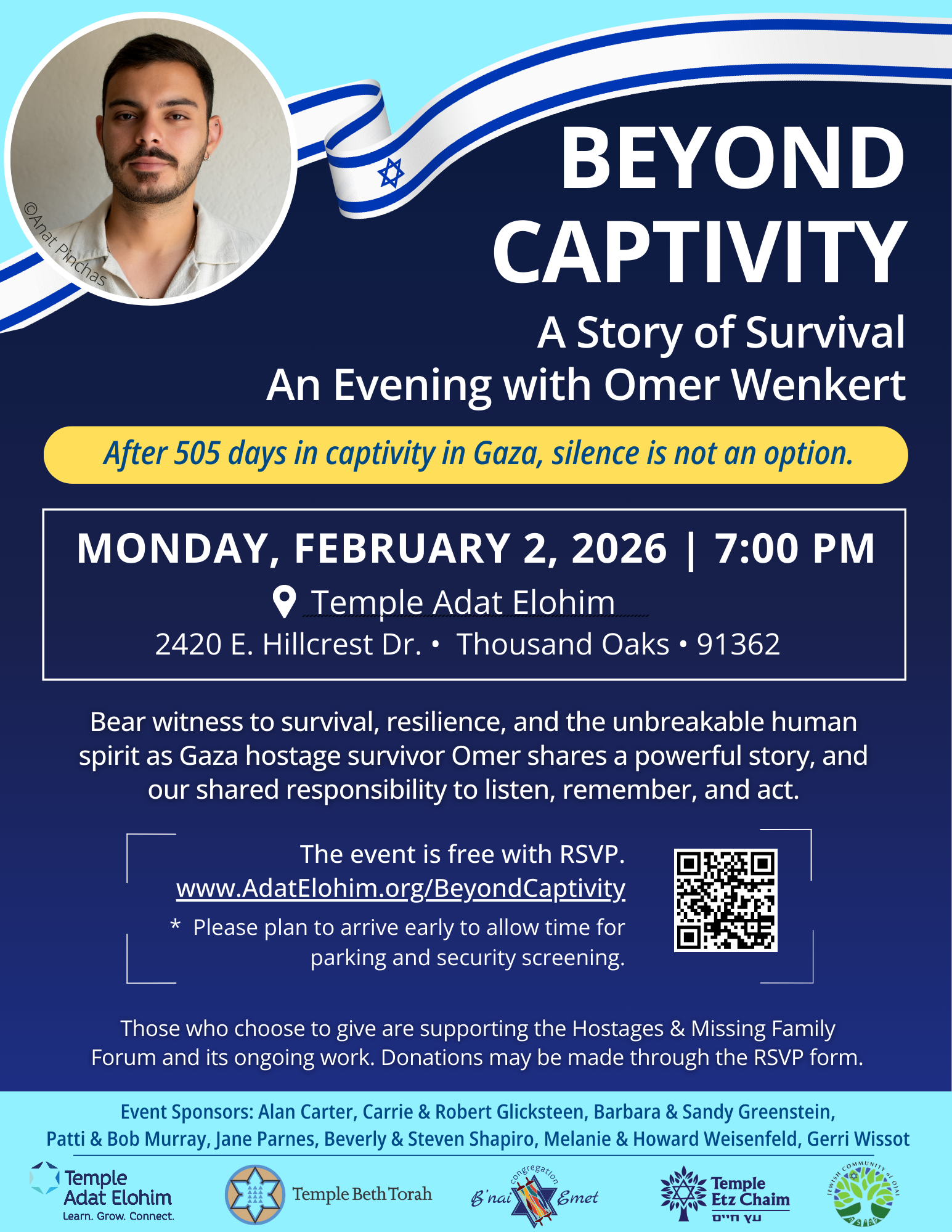 Beyond Captivity – A Story of Survival – An Evening with Omer Wenkert @ Temple Adat Elohim